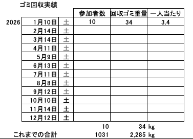 これまでのゴミ回収累計重量 2285kg